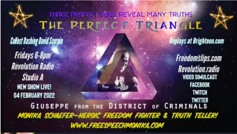 Both of the following shows were broadcast on Revolution Radio Studio A. The Perfect Triangle show is archived in video form here. Giuseppe Vafanculo and Scorpio